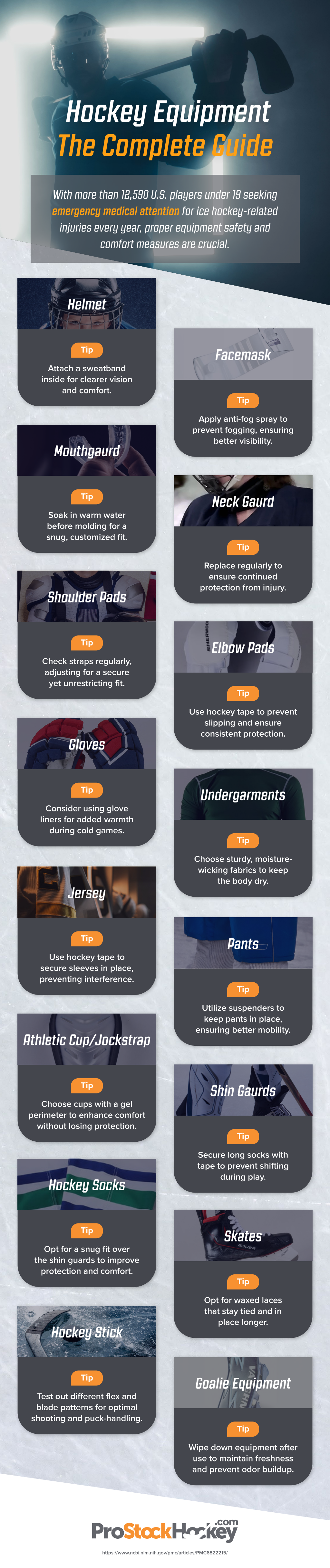 The helmet is the foundation of your child’s protection. It should carry proper safety certification, fit securely, and sit level on the head without shifting. A helmet that moves or feels loose cannot properly protect against impact. Make sure the chin strap is snug and the interior padding is in good condition. Pairing the helmet with a full cage or face shield helps guard against stray pucks and sticks. A properly fitted mouthguard adds another layer of defense and may reduce the likelihood of concussion. While no equipment can remove all risk, quality head and face protection significantly lowers it.